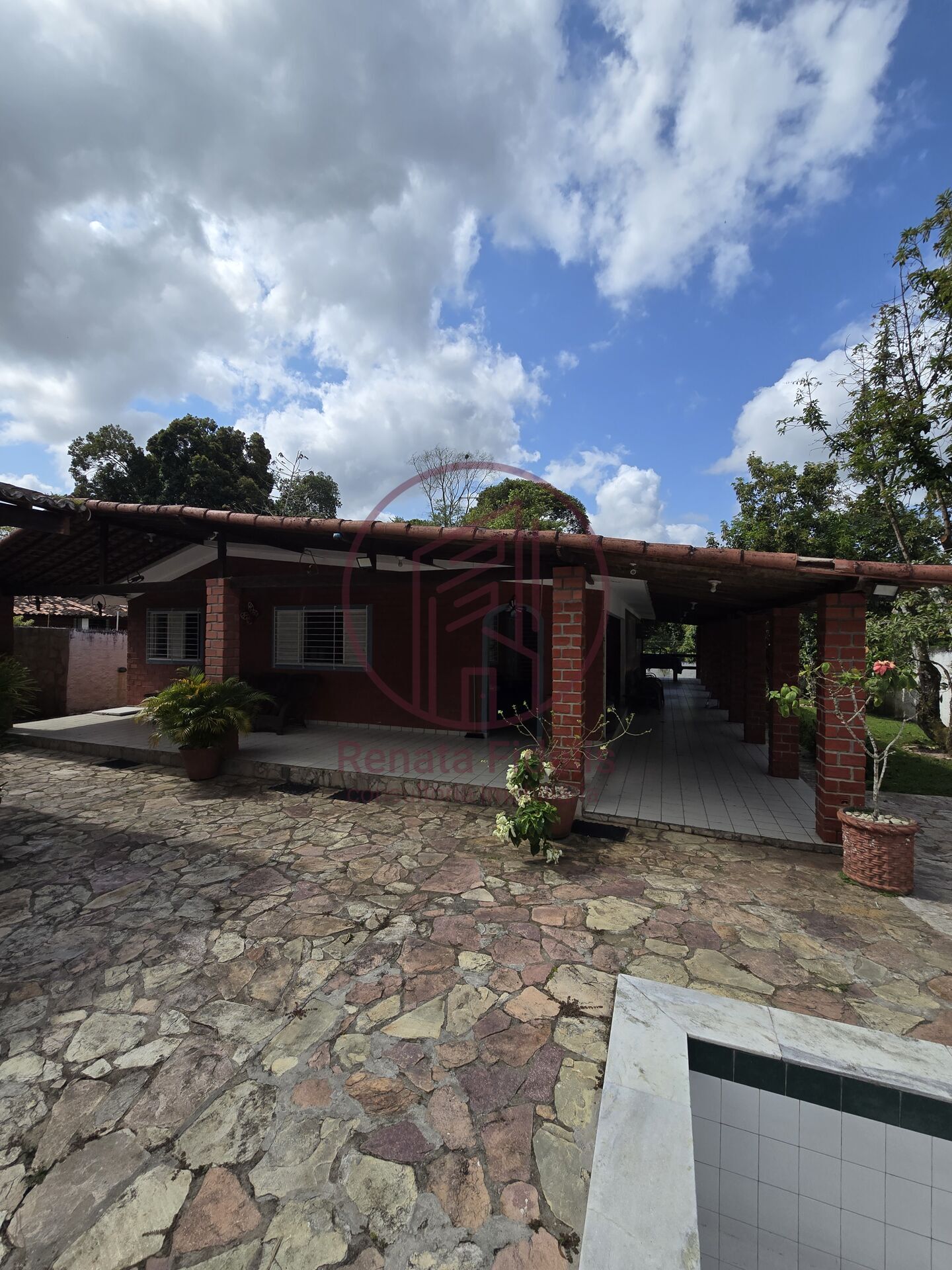 A casa está sendo alugada mobiliada e está localizada em Aldeia, a 1 km da Estrada principal, com fácil acesso. É murada e conta com 3 suítes, lavabo, área gourmet com churrasqueira e banheiros, piscina de 50 m² (5x10), terraço amplo em L, casa de caseiro/empregada, campo de futebol, playground, quintal grande (terreno de 1200 m²), cisterna 10.000 litros + 5.000 litros na caixa d'água.